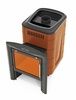 Выше парогенератора находится емкость под мелкие камни или нержавеющие шары, вмещающая 5 кг мелкого камня, называемая закрытой каменкой с воронкой для подачи воды и получения мелкодисперсного пара. Электрическая печь многофункциональна, и при правильной эксплуатации она подойдет для любителей как финской сауны, так и русской бани. Управление осуществляется с помощью встроенного пульта.