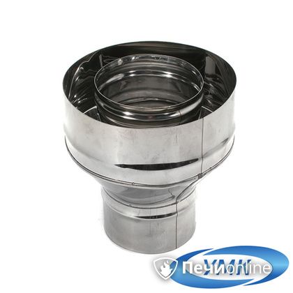Элемент дымохода старт-сэндвич УМК предназначен для перехода от одностенного участка дымохода к двустенному (сэндвич-трубе), тип соединения папа-мама, диаметр 150/210мм.